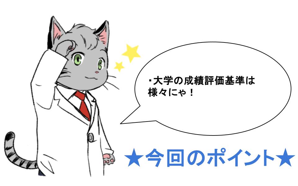 高校まででは基本的に決められた成績評価基準があり、それに沿って評価されると思います。 でも、大学に入ると、大学ごとというよりは、科目、教授ごとに評価基準があって、学生の中にはなかなかこの方式に慣れない ...